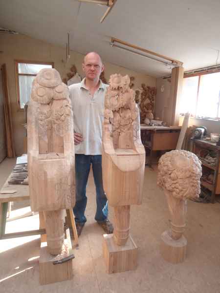 Украшения для лестницы - резные композиции из дуба, ручная работа